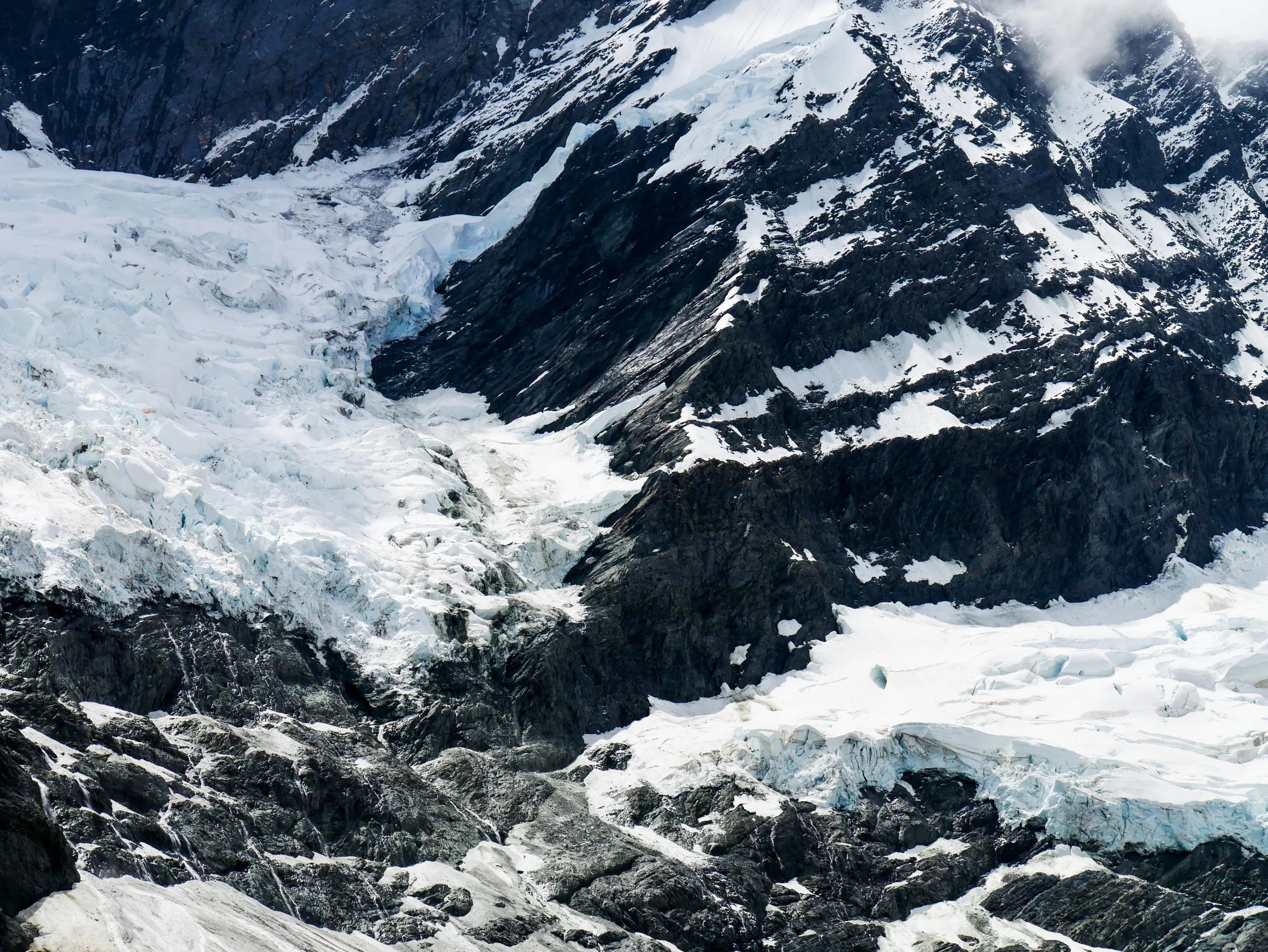 We saw multiple small avalanches unfolding whilst underneath the Rob Roy Glacier that I managed to capture on camera. They may look small but the reality is grim: we are losing ice much faster than it is replaced and the retreat in my lifetime is a hard pill to swallow.